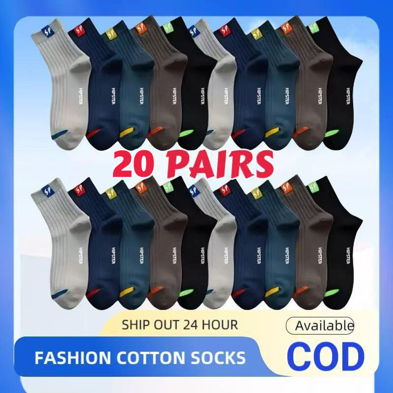 25 minutes AgoFreeShiping [10 pairs per bag] (Sizes: 36-43) Men's cotton socks, simple style, lettered mid-tube jacquard casual socks - FreeShiping-20Pairs-onlyP299